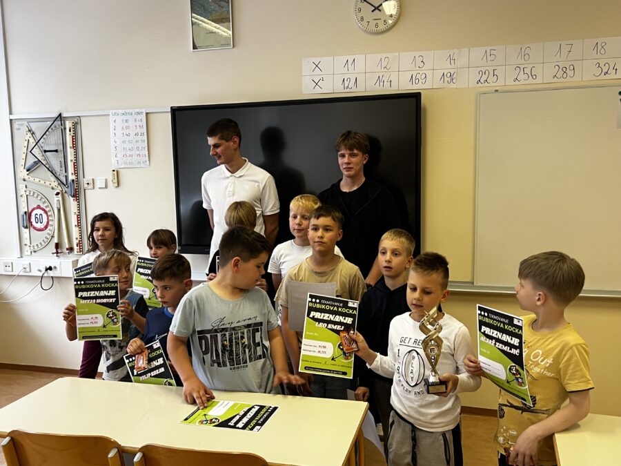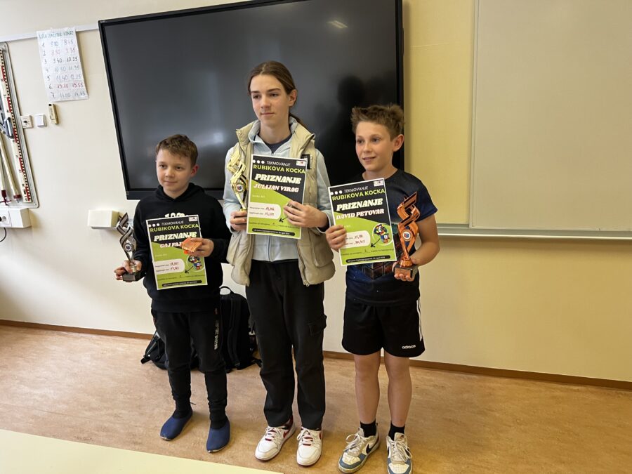 Izjemen rezultat je dosegel naš učenec Julijan Virag. V najbolj razširjeni kategoriji (3×3) je s suverenim nastopom premagal vso konkurenco in si prislužil zlati pokal za 1. mesto s časom 13 sekund.