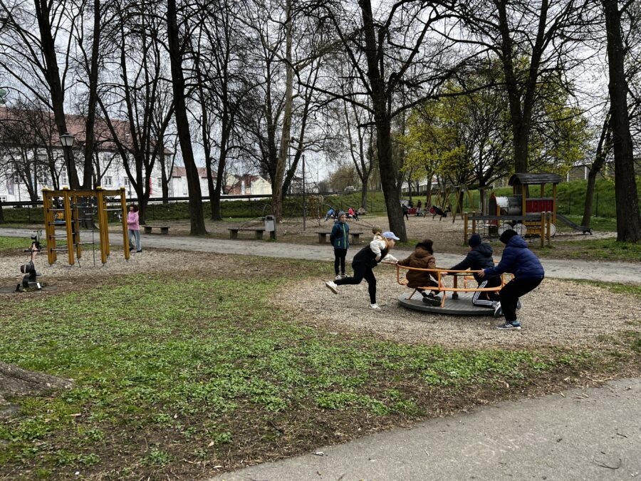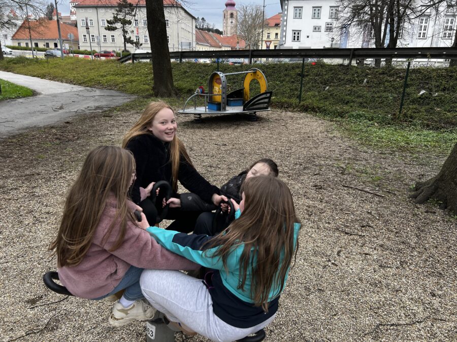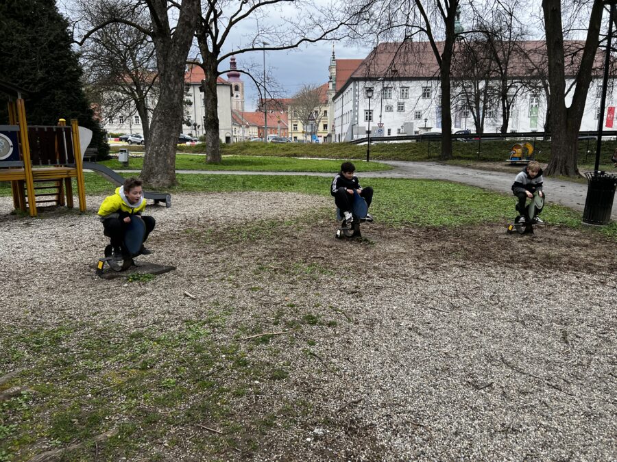 Pomemben del dneva je bilo tudi gibanje in sprostitev v naravi. V mestnem parku so učenci izvajali športno-gibalne aktivnosti, kar je dodatno prispevalo k dobremu počutju in povezanosti skupine.