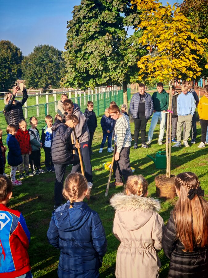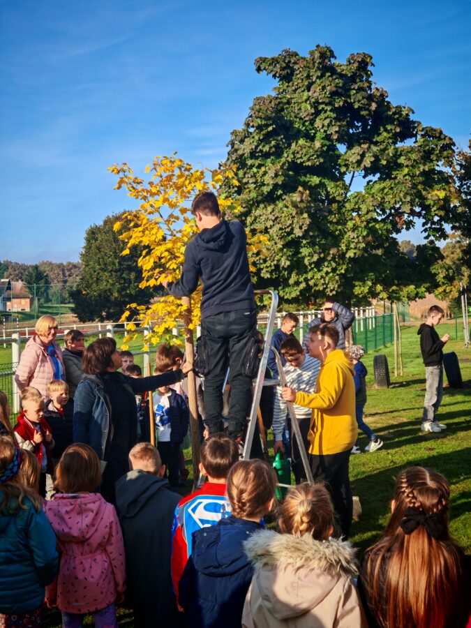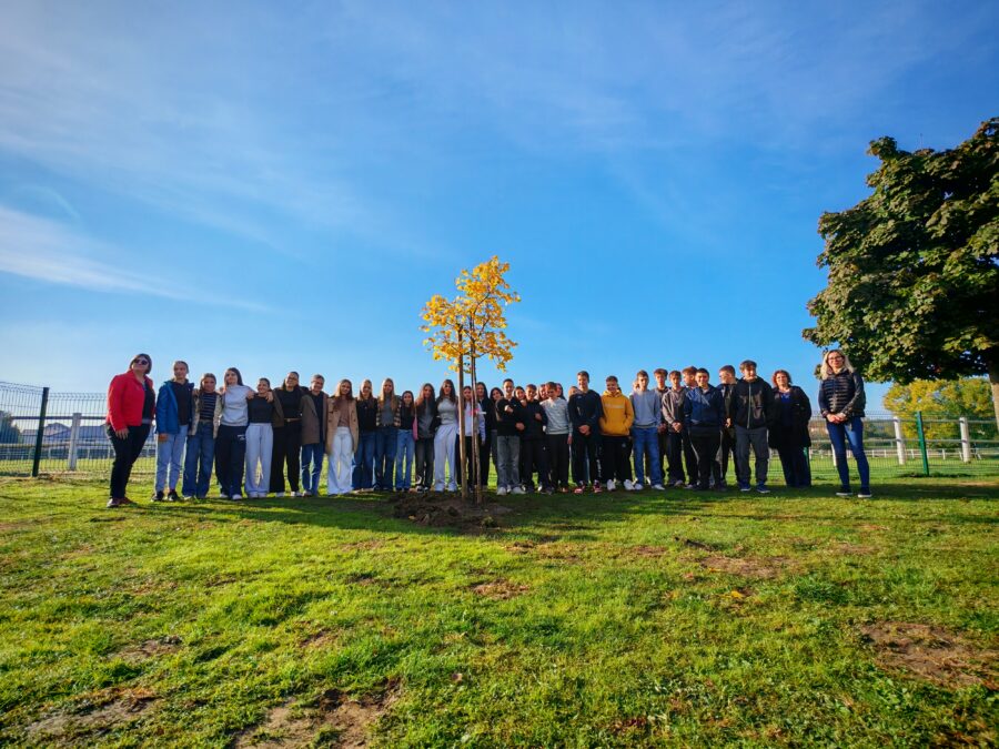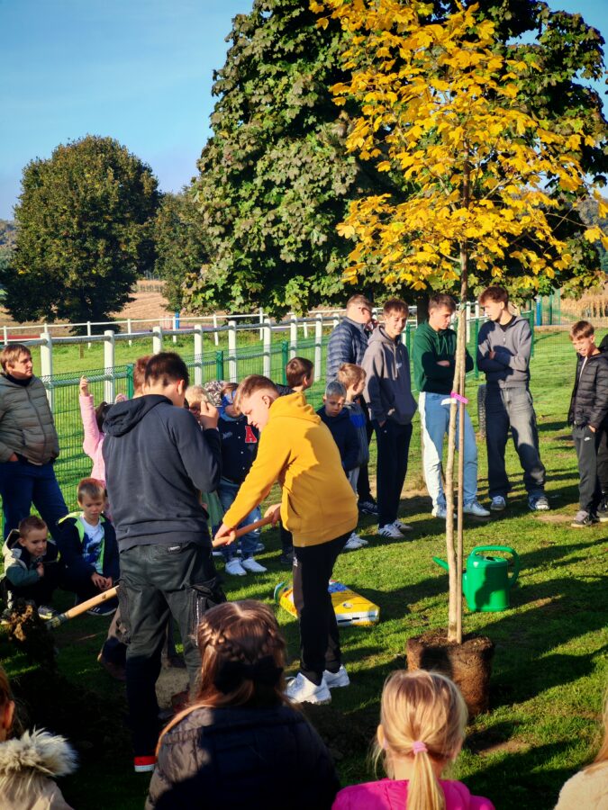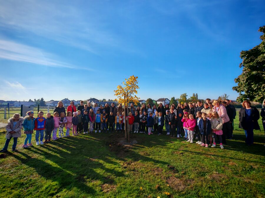 Sledilo je sajenje drevesa javorja. Na šolskem igrišču so se zbrali devetošolci in prvošolci. Ravnateljica je učence nagovorila in jim razložila simboliko sajenja drevesa. Povedala jim je, da bodo oni odšli naprej v srednje šole, to drevo pa bo ostalo in raslo naprej, kar bo druge učence in nas spominjalo na njih. Skozi to šolsko leto bodo oni odgovorni, da bodo za drevo skrbeli ter ga negovali. Prvošolci bodo potem spremljali razvoj ter rast drevesa še naprej.
